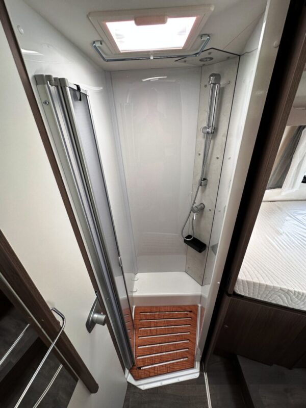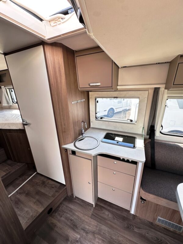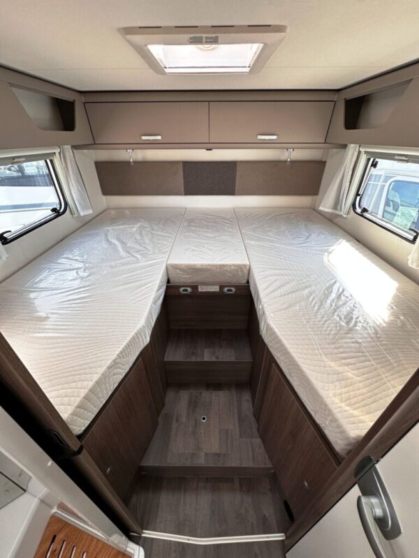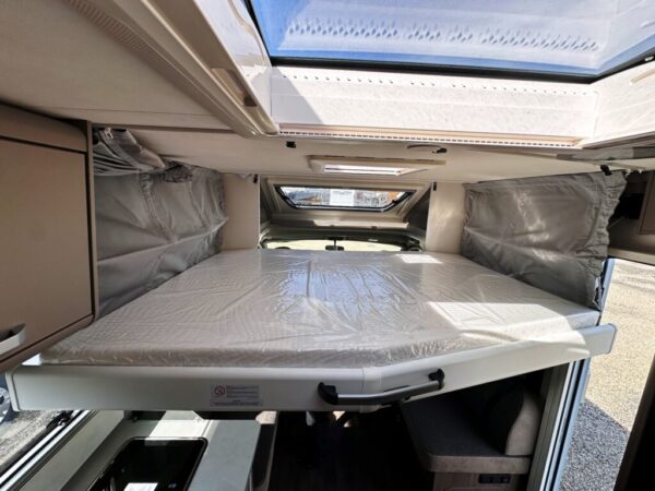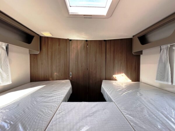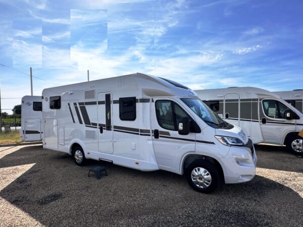 Camping-car profilé T457 – Fiat Ducato 2.2L 140 CV – Année 2025 – 0 km – 5 couchages – 4 places carte grise – 7,39 m – Pack confort inclus – Réfrigérateur 156L – Lit pavillon Clima-Plux – Réservoir isolé – Garantie 2 ans + 7 ans étanchéité.